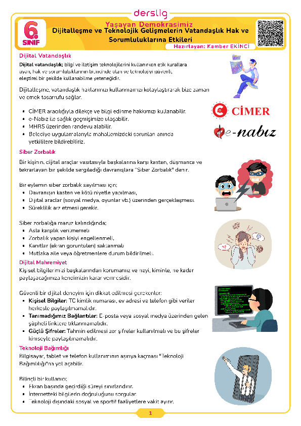 Dijitalleşme ve Teknolojik Gelişmelerin Vatandaşlık Hak ve Sorumluluklarına Etkileri Test- 1