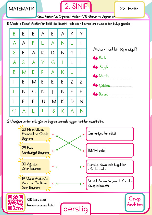 2. Sınıf Millî Gün ve Bayramlarımız Cevap Anahtarı