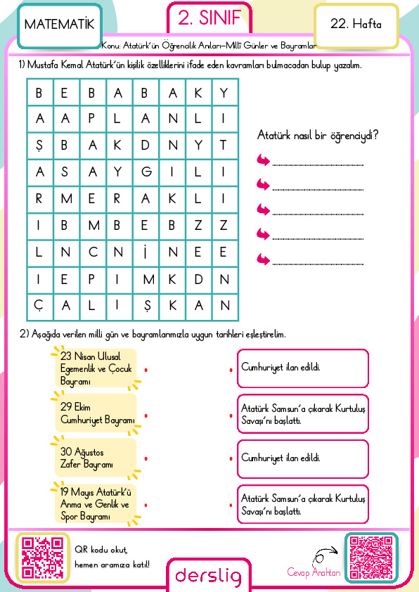 2. Sınıf Kasım Ara Tatil Ödevi