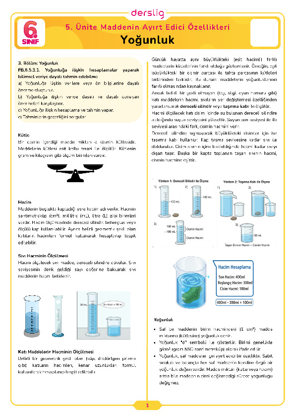 6. sınıf 4. ünite madde ve ısı testi cevap anahtarı