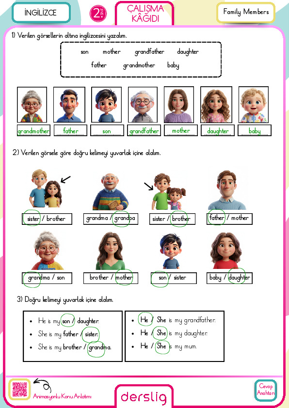 2. Sınıf Family Members’s Pyhsical Appearances Çalışma Kâğıdı Cevap Anahtarı