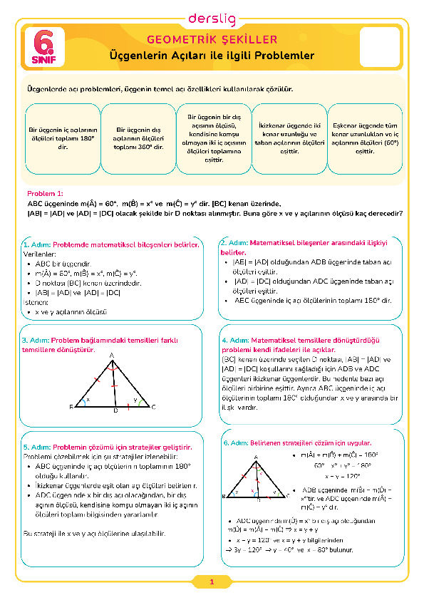 5. Sınıf 1. Tema 16. Konu Özeti (Üçgenler) Cevap Anahtarı