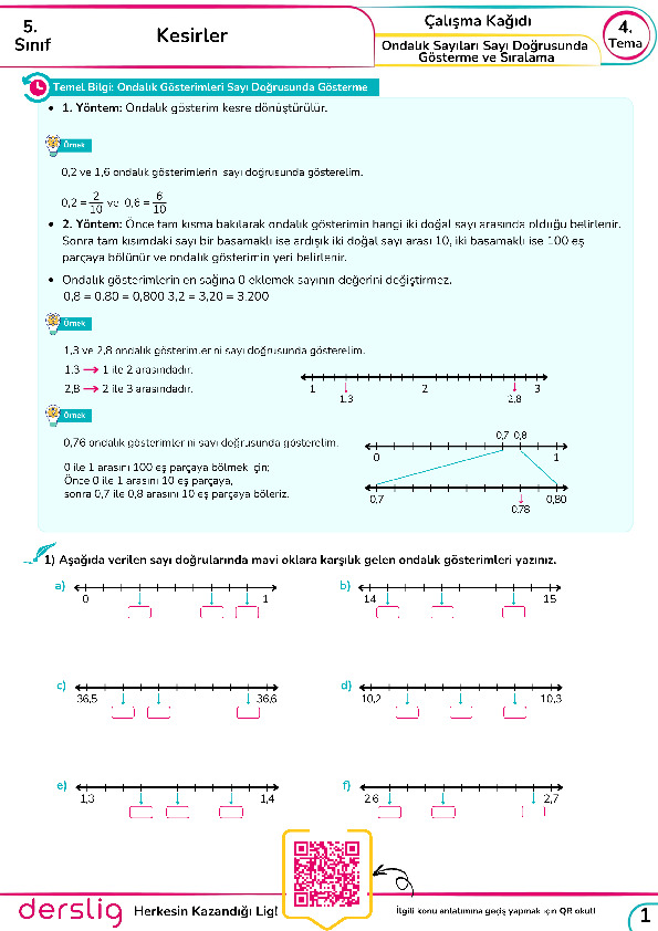 Test - 12 Ondalık Gösterimleri Sayı Doğrusunda Gösterme ve Sıralama