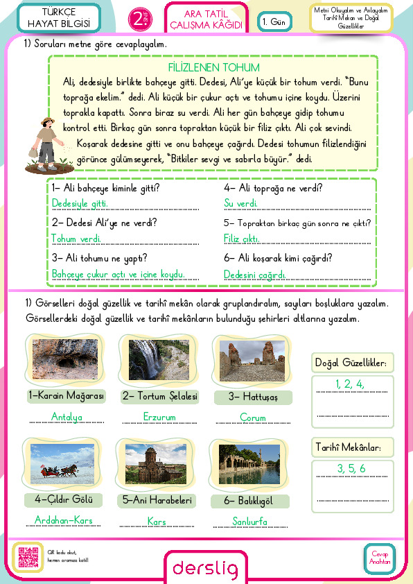 2. SINIF 15 TATİL ÖDEVİ CEVAP ANAHTARI