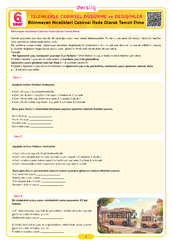 Bilinmeyen Nicelikleri Cebirsel İfade Olarak Temsil Etme