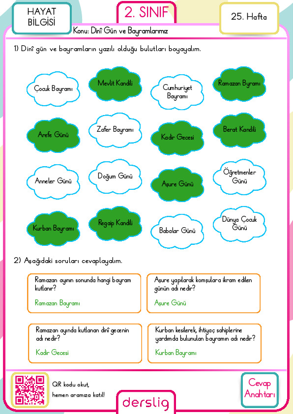 2. Sınıf Dinî Gün ve Bayramlarımız Cevap Anahtarı