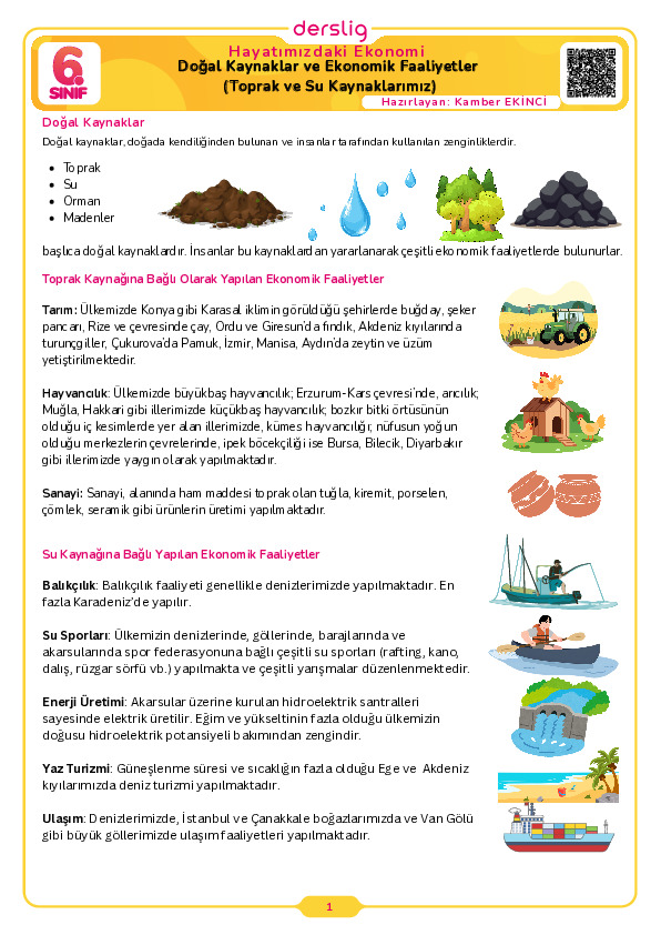Doğal Kaynaklar ve Ekonomik Faaliyetler (Toprak ve Su Kaynaklarımız)