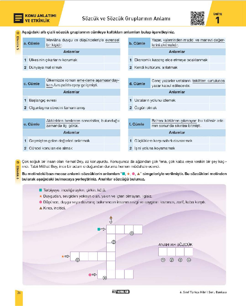 6. Sınıf Türkçe 2. Dönem 1. Yazılı Çalışma Föyü - Yıldırım