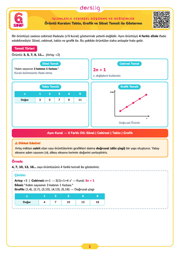 Örüntü Kuralını Tablo, Grafik ve Sözel Temsil ile Gösterme Test -1
