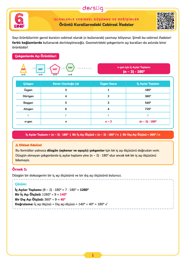 Örüntü Kurallarındaki Cebirsel İfadeler Test- 1