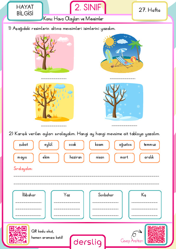 2. Sınıf 2. Dönem Ara Tatil Ödevi