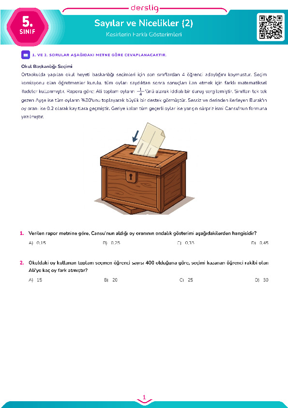 Test - 14 Kesirlerin Farklı Gösterimlerini Karşılaştırma ( Yeni Nesil)