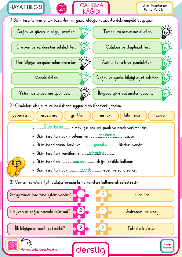 2. Sınıf 15. Hafta Cevap Anahtarı