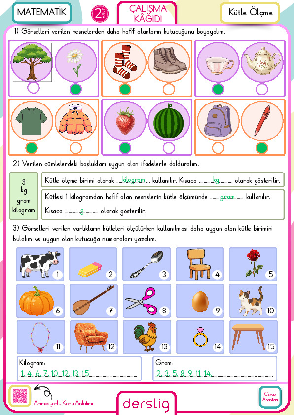 2. Sınıf 15. Hafta Cevap Anahtarı