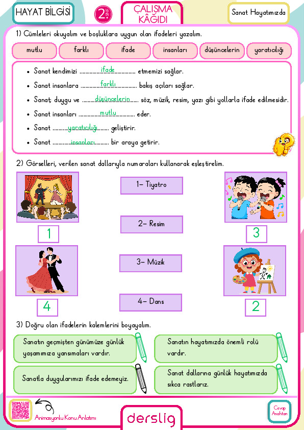 2. sınıf Ailem Benim Her Şeyim Cevap Anahtarı